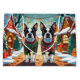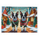 This festive design captures the joyful spirit of the holiday season, featuring an adorable dogs.Nestled in a winter wonderland, complete with a decorated Christmas tree, and beautifully wrapped presents. Snowflakes gently fall, adding a magical touch to the scene, while the vibrant colors of the holiday decorations create a warm and cheerful atmosphere.