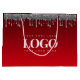 Embale seu presente de forma elegante com esta bolsa de presente que apresenta brilho prateado gotejando, fundo ombre vermelho e logotipo personalizado. Adicione facilmente seus detalhes clicando na opção "personalizar este modelo".