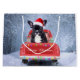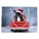 Um caminhão de Natal passando pela neve entregando presentes de Natal e um cachorro-da-chuva francês. Uma ideia perfeita de presente de Natal para alguém que ama esta raça de cães.