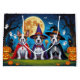 Uma cena divertida de Halloween, com um cachorrinho malicioso a espreitar-se de uma abóbora esculpida, rodeada por vibrações de outono assustadoras. Com um charme viscoso e cores de outono, é o toque perfeito de humor para a estação.