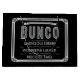 Estilo maravilhoso de tipografia vintage design de arte gráfica Bunco. Apresenta um quadro decorativo, fita e elementos de design. As palavras tipográficas incluem: Bunco, Amigos Maravilhosos, Risos Maravilhosos e Tempos de Precioso. Na moda é uma forma excelente de entregar os prêmios Bunco na noite de Bunco.