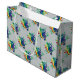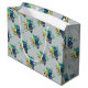 O floral-tipo gracioso arranjos de triplo e os clefs baixos nas cores do arco-íris conectam diagonalmente sobre a superfície inteira - fronteie, traseiro, e lados - deste saco alegre, elegante, música-temático do presente.
