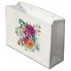 Sacola Para Presentes Grande Buquê Floral Rosa, Laranja e Rosas Brancas