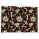 White poinsettias, red berries and silver ornaments abundantly cover a deep burgundy background in this classic Christmas floral print gift bag