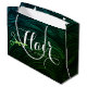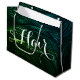 Salão de Cabelo / Cabeleireiro / Cabeleireira / Salão de Beleza / Maquiadores / Planejadores de Tesouras / Planejadores de Eventos / Consultores / Proprietários de Lojas / Fashionistas Sacolas de Presente Personalizadas Modelos - Tesoura de Folha Dourada Verde Falsa Moderna em Fundo de Padrão de Cabelo Verde e Azul Elegante.