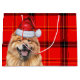 Quão fofo é este pequeno Chow em seu boné vermelho contra um excelente vermelho e preto de fundo padrão de xadrez sazonal, fazer este saco de presentes de Natal perfeito para a mãe Chow ou para o amante do cachorro.