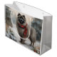 Sacola Para Presentes Grande Cachorro Keeshond no Natal da Neve