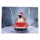 Um caminhão de Natal passando por neve entregando presentes de Natal e cachorro-quente. Uma ideia perfeita de presente de Natal para alguém que ama esta raça de cães.