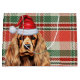 Que fofo é este Cocker Spaniel em seu boné vermelho contra um excelente vermelho e verde xadrez sazonal com padrões de fundo, fazer este saco de presentes de Natal perfeito para a mãe Cocker ou para o amante do cachorro.