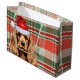 Sacola Para Presentes Grande Cachorro Panorâmico de Natal xadrez