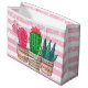 Sacola Para Presentes Grande cacto tirado mão com fundo das listras