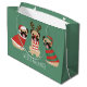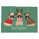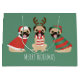 Óptica ilustração de três cachorros-pug vestidos em trajes de Natal.