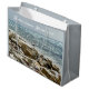 Foto de Zolotareva.Gaivota branca e surf do mar. o sol se inclina sobre a água; o banco de gaivotas na brisa.Azul claro é a cor do céu e, consequentemente, é também a cor do mar, lagos e rios. bela vista do mar da colina. Você pode adicionar nome ou texto personalizado. Personalizar este modelo