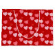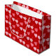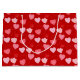 Um padrão de conversas ubíquas sobre doces corta a leitura de "Love You", "Be Mine", "Kiss Me", "XOXO" e "Hug" em vermelho, rosa e rosa em cascata sobre um fundo vermelho Namorados