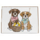 Uma bela ilustração cartoon dos cães Boxer celebrando a Páscoa. Perfeito para amantes de animais de estimação ou pais de cães para Páscoa.