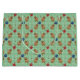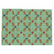Um belo estilo de desenho vermelho dachshund com uma expressão amigável se coloca em um fundo verde com uma pata azul centrada entre quatro cópias da imagem do cachorro. O fundo está espalhado com mais pegadas e ossos de brinquedo. Este padrão é agrupado para que ele possa facilmente ser transferido para outros tipos de produto.