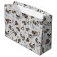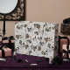 Desenhado à mão a tinta preta, este saco de presentes apresenta um lindo padrão de crânios, rosas e teias de aranha em tons de creme e de pelúcia, todos contra uma elegante cinza de luz.