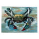 "Blue Crab on Blue" foi criado com tinta acrílica em um painel de madeira.