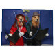 Este saco do presente caracteriza os retrievers dourados vestidos como Carolers do Natal do Victorian.