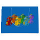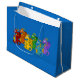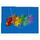 Design com ilustração de dragões de arco-íris sobre fundo azul
