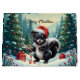 Bonita Cartoon Skunk de Natal - Engraçado Skunk de Papai Noel com Cane e Presentes Doces. Traga alegria de Natal com este lindo desenho de Natal! 🦨 🎅 Vestindo um chapéu de Papai Noel e segurando uma bengala doce e um ornamento vermelho, este gambá preto-e-branco fica em uma cena de inverno nevada com árvores verdes decoradas e caixas de presentes festivos. Perfeito para amantes de os animais, fãs de desenhos animados, e qualquer um que desfruta de arte divertida e fofa.