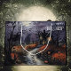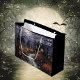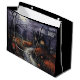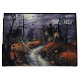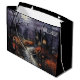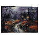 Saco de presente de Halloween com uma cena de coloração d'água com uma casa assombrada e morcegos rodando sobre a lua do outono. Feliz Dia das Bruxas no canto superior direito. Tamanho adicional disponível. Pode ser necessário ajustar a imagem para diferentes tamanhos.