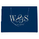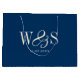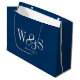 Sacola Para Presentes Grande Casais de casamento iniciais azuis do marinho Eleg