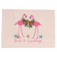 "Mares e saudações" tropicais de bolso de papel de Natal flamingo casal em grande tamanho. Cor rosa pálida com duas aves vestindo mortes festivas e permanecendo entre estrelas-do-mar. O casal flamingo e o ditado estão impressos em ambos os lados.