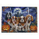 Libere o espírito assustador com esta design sombria do Dia das Bruxas apresentando um bando de cachorros sob um céu escuro e iluminado, cercado por morcegos voadores e abóboras brilhantes. Perfeito para aqueles que amam um toque de diversão terrível com seus amigos peludos!