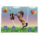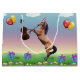 Papel de embrulho divertido e bonito, com um cavalo tocando violino. Completar com balões e um presente.
