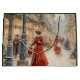 Saco de presente de férias de Natal com uma ilustração vintage em aquarela de uma cena de Natal vitoriana com senhoras de vermelho fazendo compras em uma paisagem urbana nevada decorada para as festas de fim de ano.
