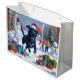 Sacola Para Presentes Grande Cena de Neve Festiva do Saltador Azul
