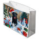 Sacola Para Presentes Grande Cena Festiva de Neve Preta de Natal Labrador