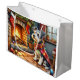 Sacola Para Presentes Grande Cesky Terrier Fireplace with Christmas Lights