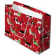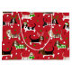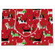 Cães de Caça-Besta com casacos castanhos, pretos, brancos e limões vestidos de roupas festivas de férias, chapéus de Santa e blárgulas com Enfeites de natal espalhados.