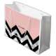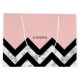 Sacola Para Presentes Grande Cevrons Pretos Brancos e Rosa
