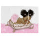 A bolsa de presente de chá de fraldas de menina africana-americana com uma adorável menina étnica vestindo uma roupa rosa bonito em um travesseiro elegante em um lindo fundo de renda rosa. Esta bolsa de presente de chá de fraldas feminino é facilmente personalizada com texto, e você pode adicionar uma cor de fundo.