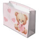 Sacola Para Presentes Grande Chá de fraldas de Corações Rosa Bear
