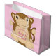 Sacola Para Presentes Grande Chá de fraldas de macaco rosa