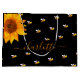 Decorado com abelhas-desmancha-prazeres, amarelas e negras felizes e sorridentes. Um fundo preto chico, decorado com um girassol amarelo e cor de laranja. Personalize e adicione um nome. O nome é escrito com um grande estilo escrito à mão com letras grandes e modernas, com pinceladas. Para manter as hastes, exclua apenas o nome da amostra, deixe os espaços ou emoji na frente e depois do nome.