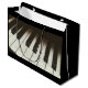 Saco de presentes com uma fotografia temática musical que apresenta uma imagem próxima das teclas de piano. Na moda e elegante.