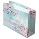 Sacola Para Presentes Grande Cherry Blossomo Turquesa Rosa Aniversário