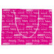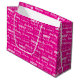 Hot pink name collage birthday gift bag decorated in nine different fonts spelling a custom name in white. Chic personalized girly gift wrap with fun typography.