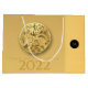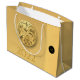 design elegante com ouro de papel redondo de um Tigre. Design em um grande saco-presente com Large 2022, Year of the Tiger e monogramas em preto redondo + mesma imagem de fundo atrás. Você pode facilmente alterar o texto (fonte, cor, tamanho e posição) clicando no botão personalizar.