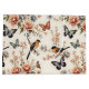 As aves e as borboletas estão dispersas entre um padrão de florescência de flores cor-de-rosa cor-de-rosa sobre um fundo de marfim, criando um padrão harmonioso e caprichoso sem soldadura. O padrão de imagem pode ser maior ou menor para criar um efeito diferente.