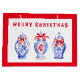 Este saco de presentes chic contém 3 frascos de gengibre diferentes com arcos vermelhos. A borda ao redor da bolsa é uma borda vermelha. Texto no topo diz "Feliz Natal". Há um padrão de treliças de bambu nos lados.