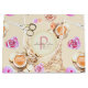 Uma arte de aquarela em estilo chique que inclui rosas de cor rosa e cor de pêssego da torre Eiffel, uma xícara de chá em forma de coração, tesoura e pêssego e macarões franceses cor-de-rosa. Um monograma de crachá redondo com um roteiro de Chique de Paris. Personalize alterando o texto.