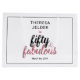 Saco de presente chique e fabuloso para os cinquenta anos! Personalize com o nome e data de nascimento da aniversariante. "cinquenta & fabuloso" é impresso em uma tipografia rosa corado preta e dourada moderna e bonita com o cinquenta sobre o fabuloso.