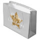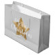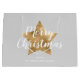 Sacola Para Presentes Grande Cinza Elegante, Dourada Estrela Feliz Natal