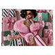 Mulher-quiteira cercada por presentes de Natal rosa e verde